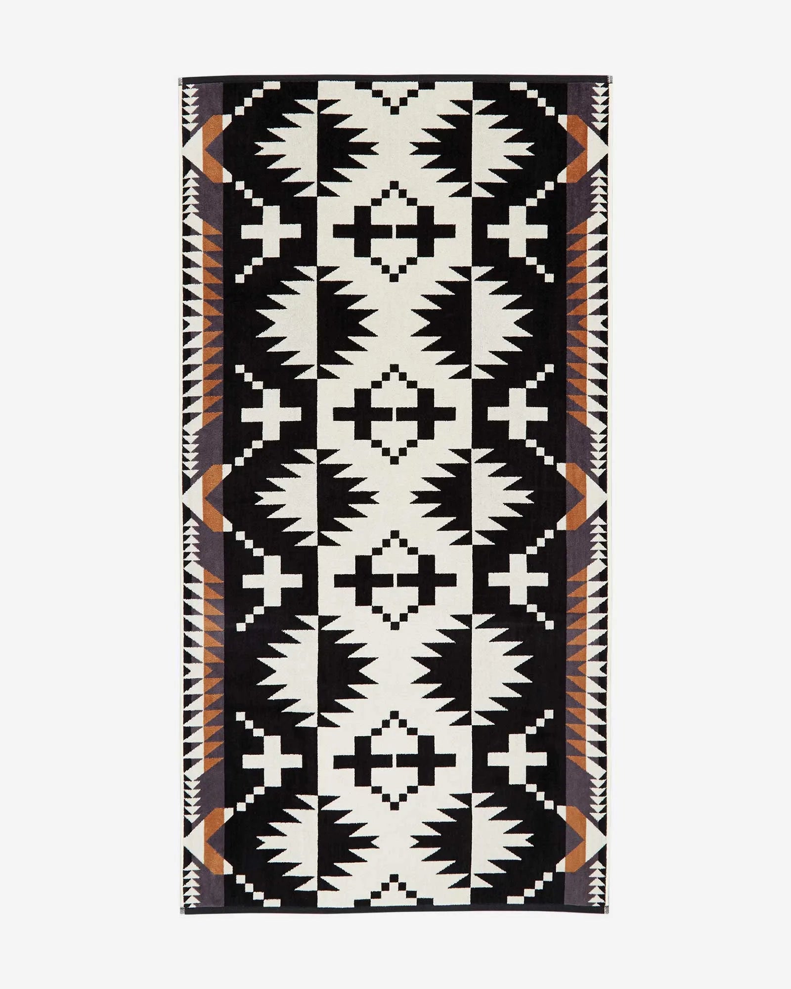Extra-plush terry velour bath towel is sheared to a velvety softness on one side, looped for superior absorbency on the other. Thick and luxurious, this striking jacquard towel is specially woven to keep its rich color, wash after wash.