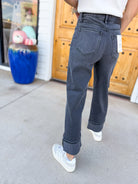 - Charcoal washed cuffed jeans