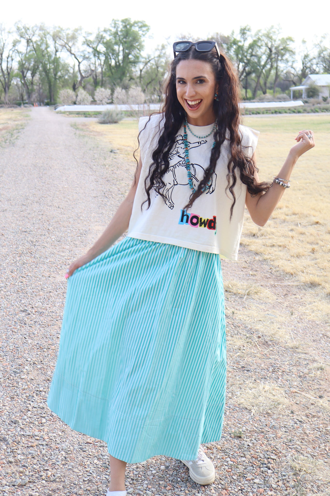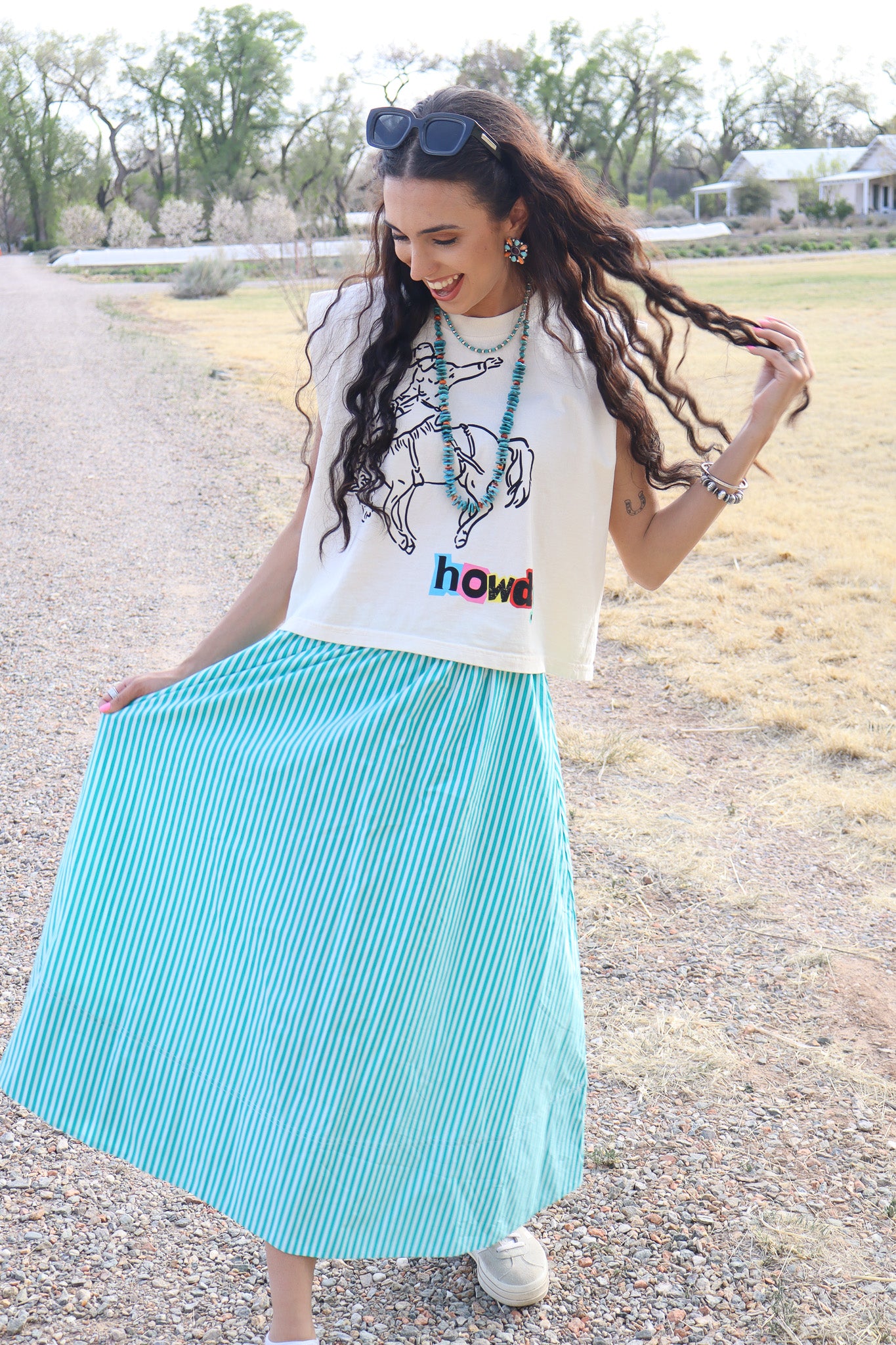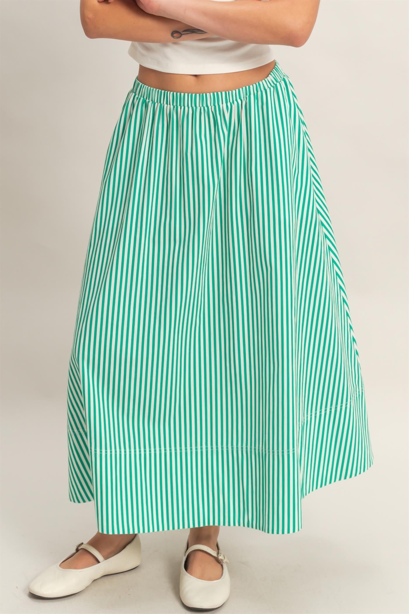 - Green and white striped flowy skirt