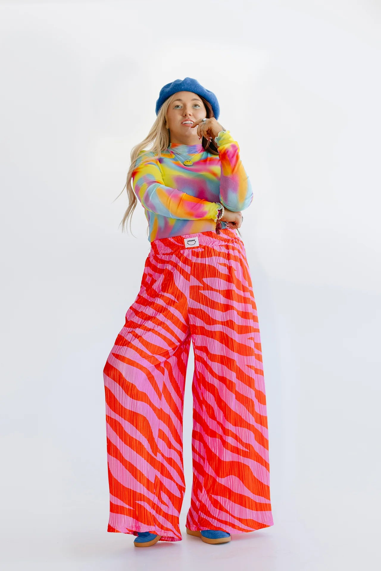 - Pink and orange zebra pants
