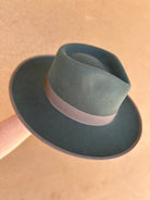 - Rhino Grey Solid Firm Felt Rancher Style Hat with Frayed Hatband Detail and a Leather accent strap