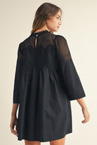 - Crochet lace trim black dress