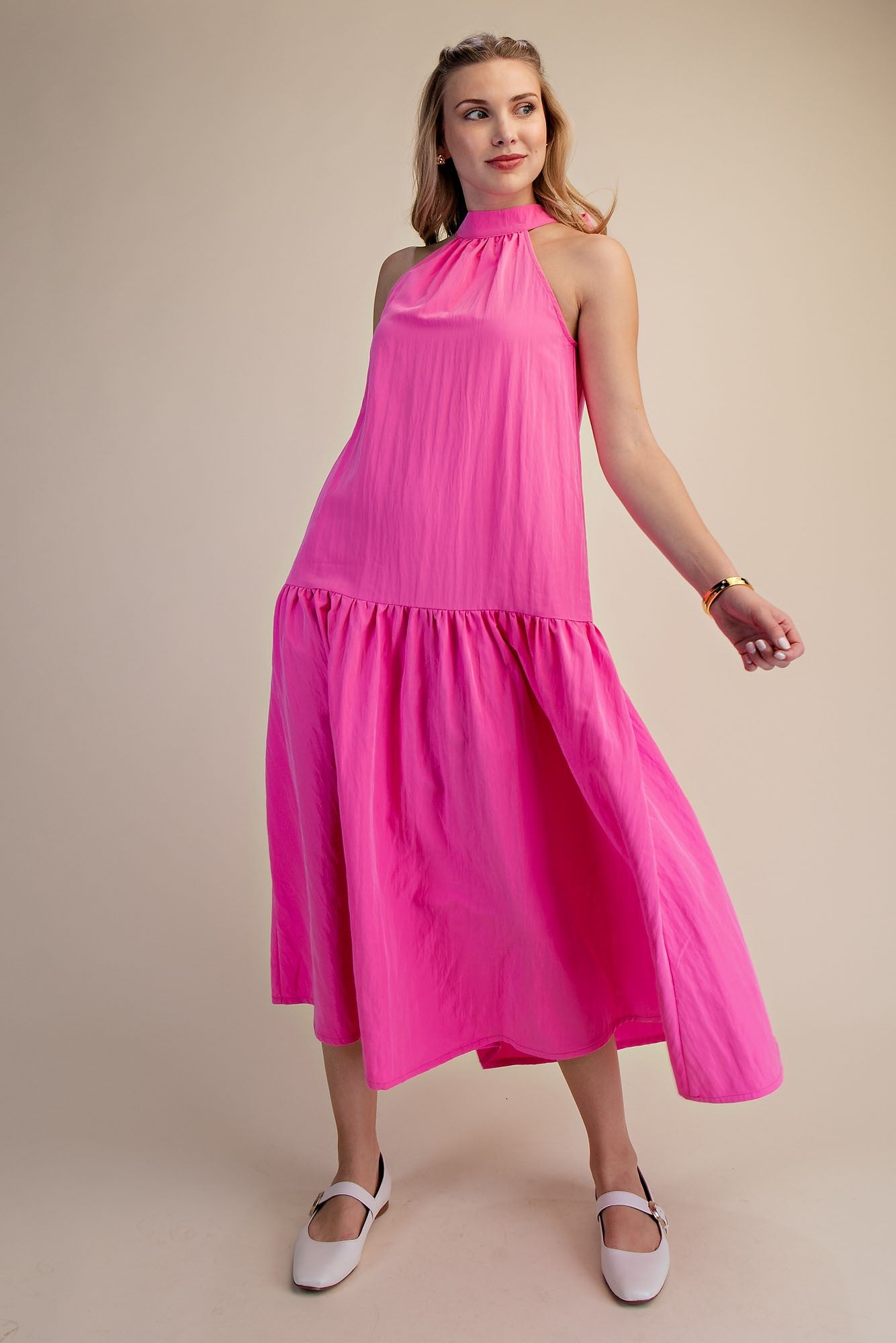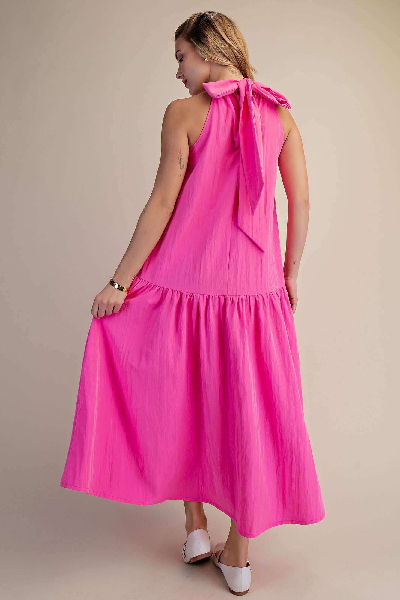 - Halter tie neck sleeveless hot pink dress