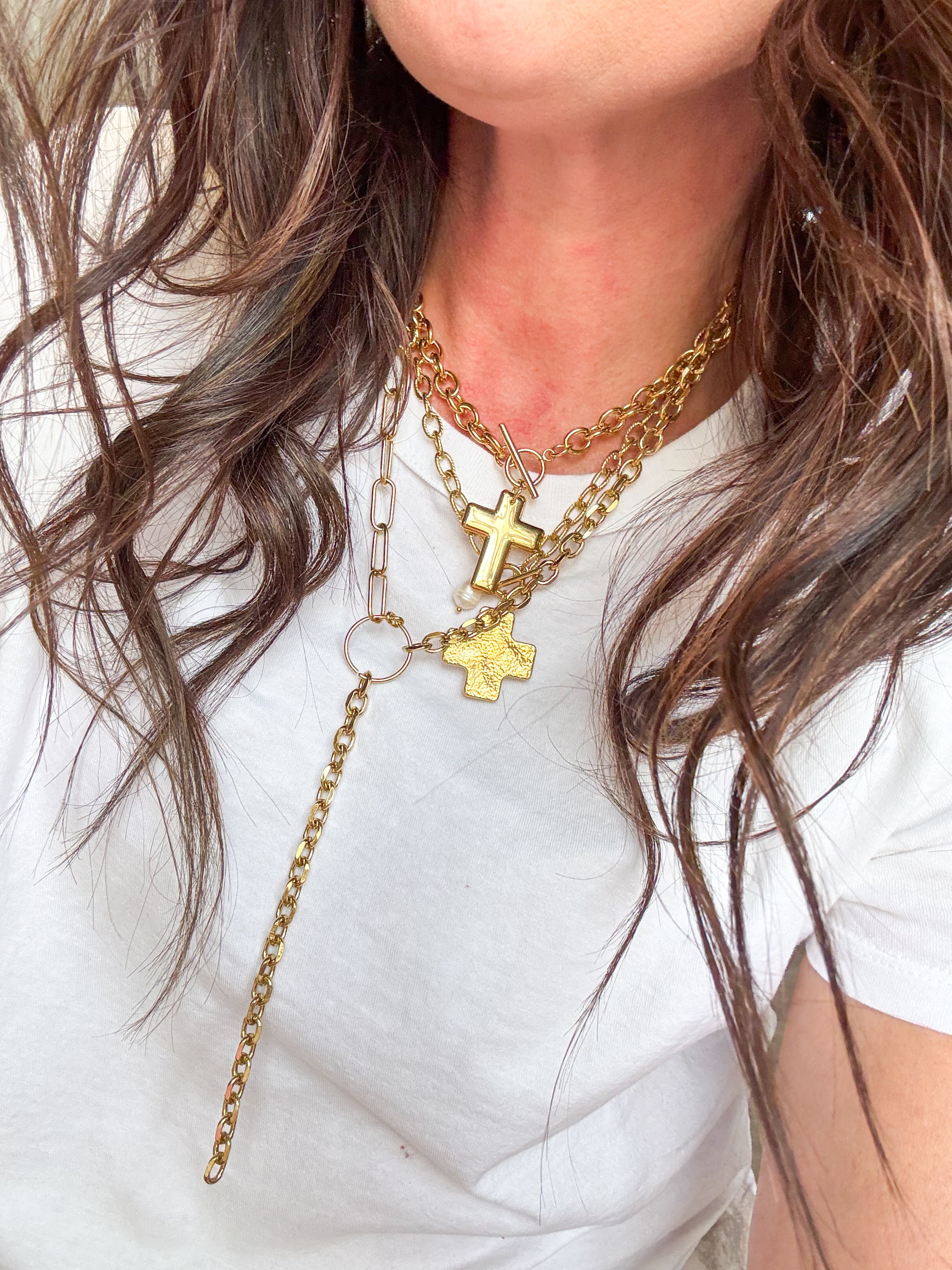 - Gold plated water resistant cross necklace