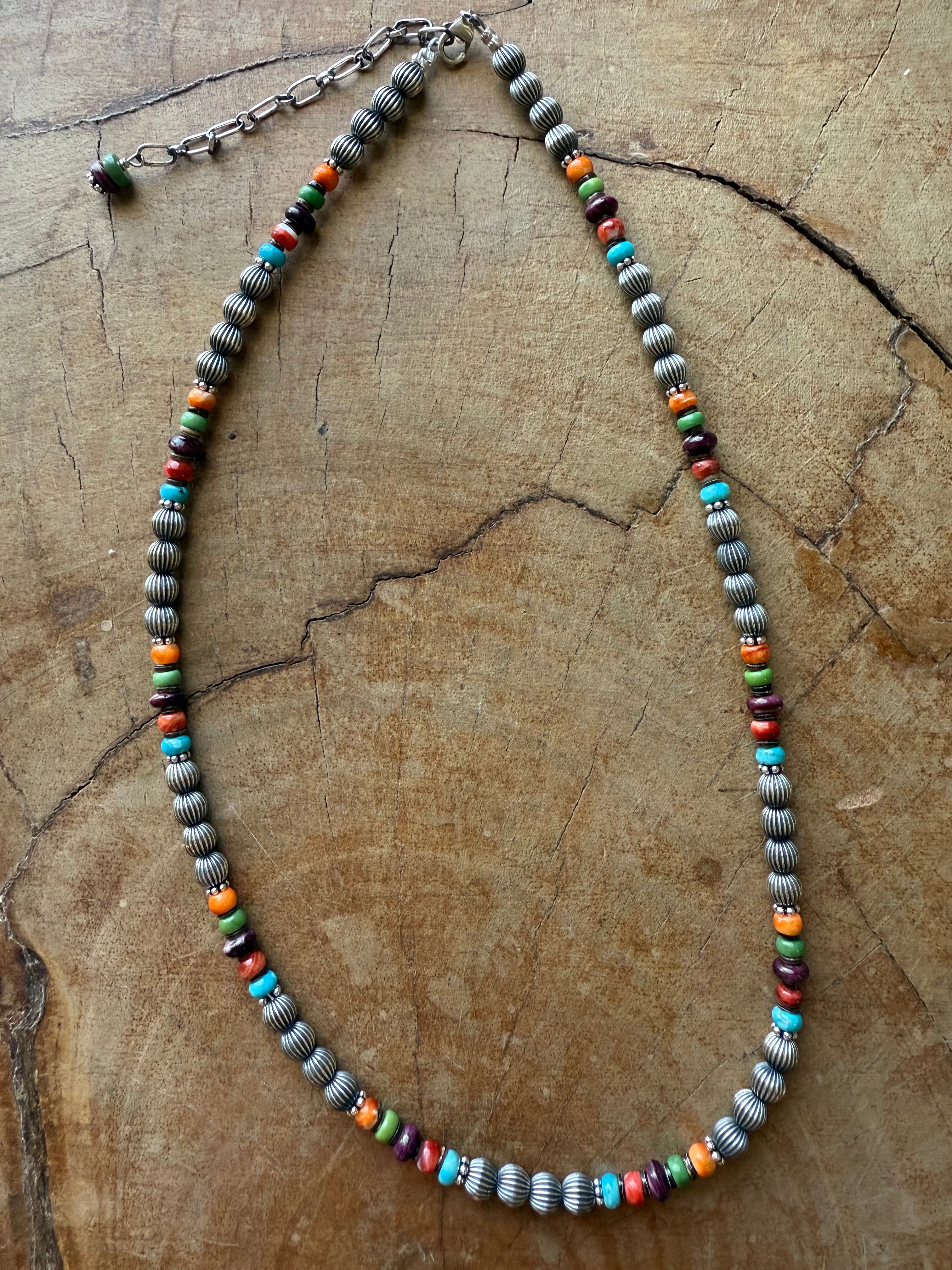 - Multi stone necklace, sterling silver, spyny oyster