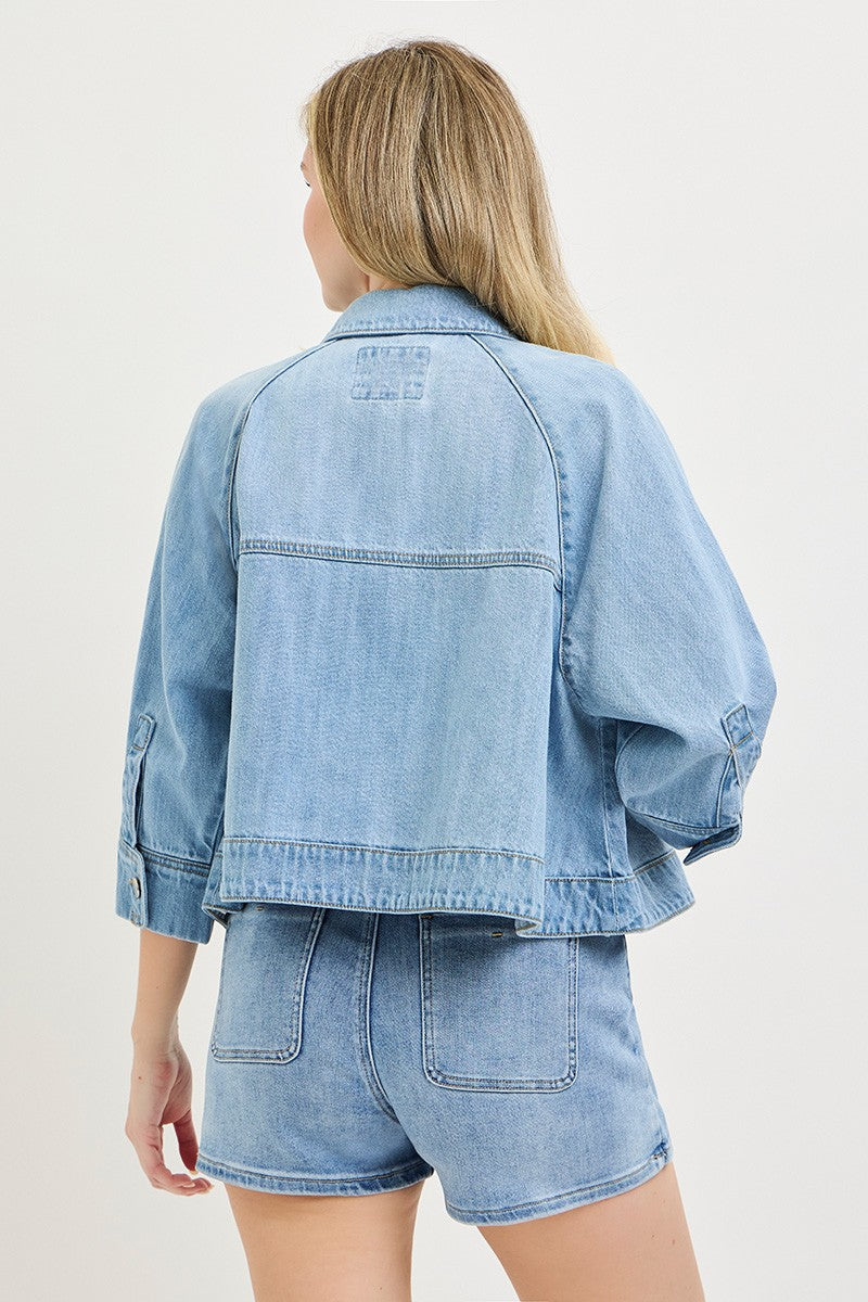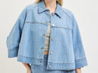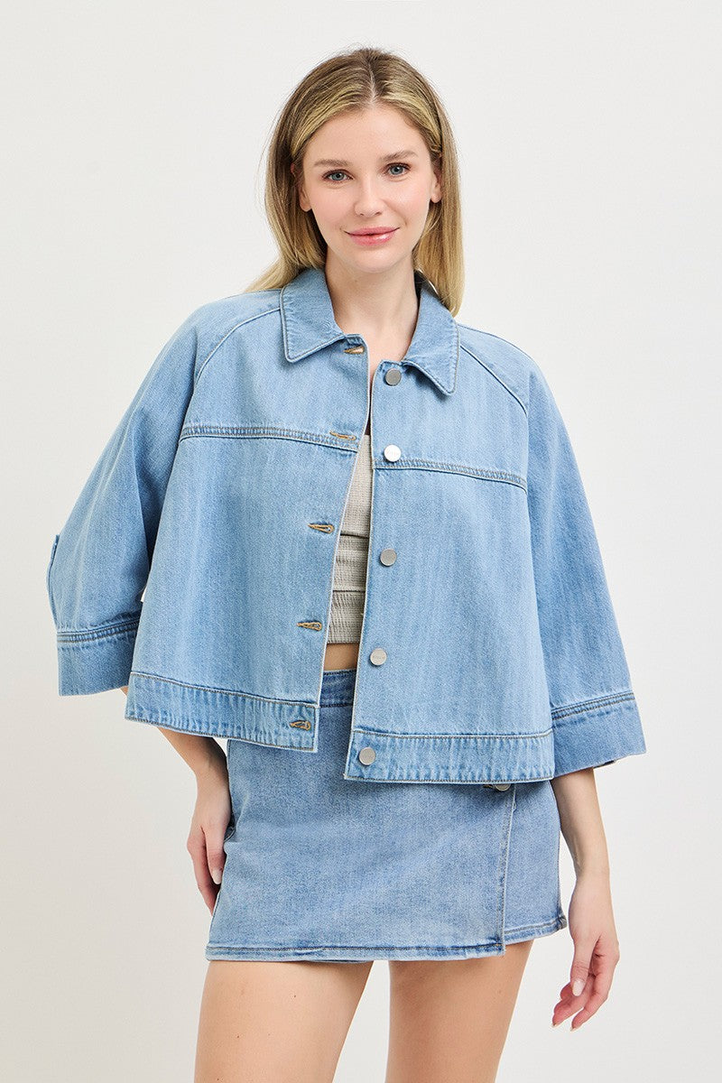 - Cropped cape style denim jacket