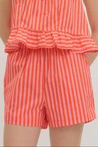 - Orange and pink striped shorts