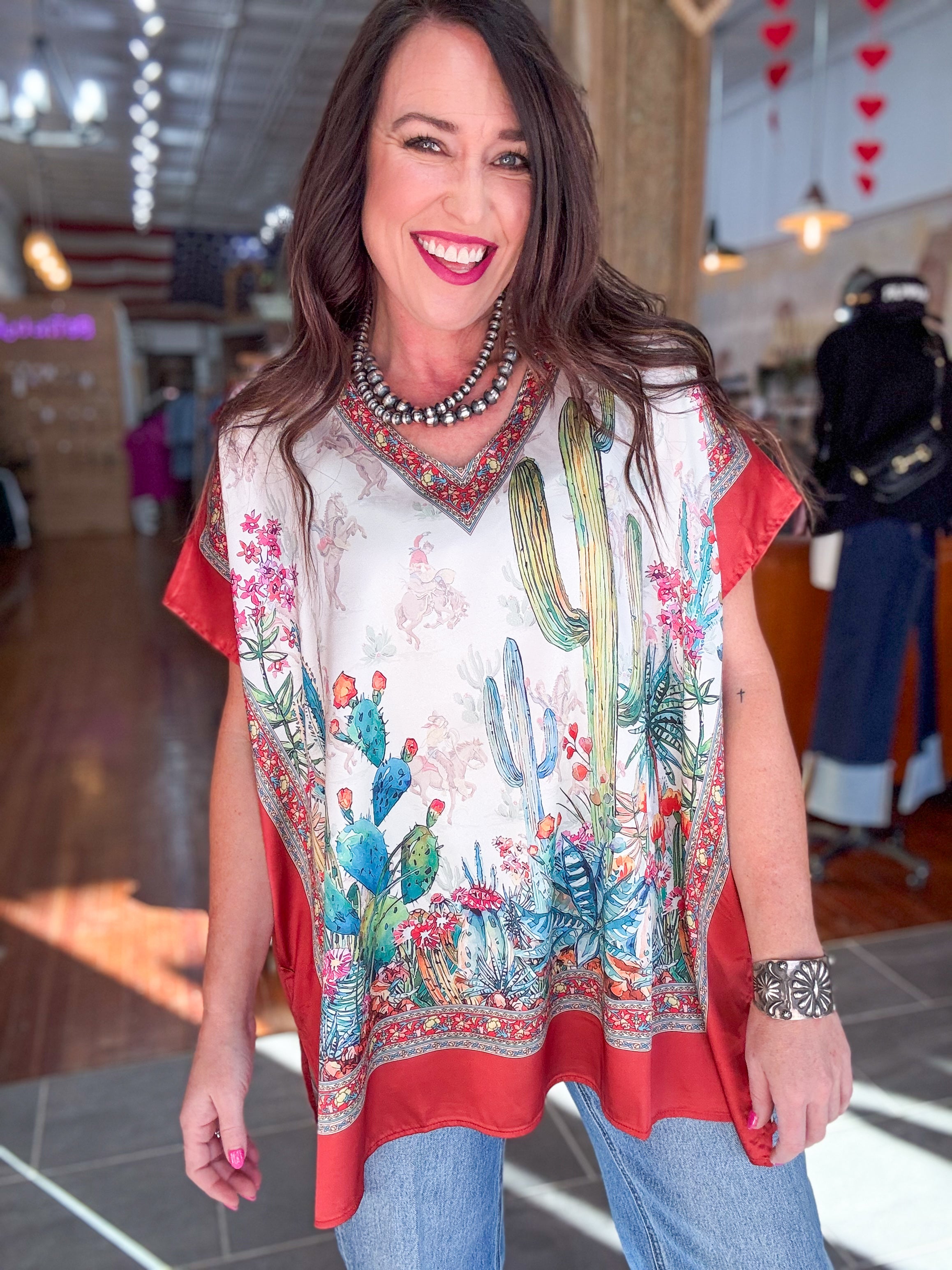 • Silky western printed top