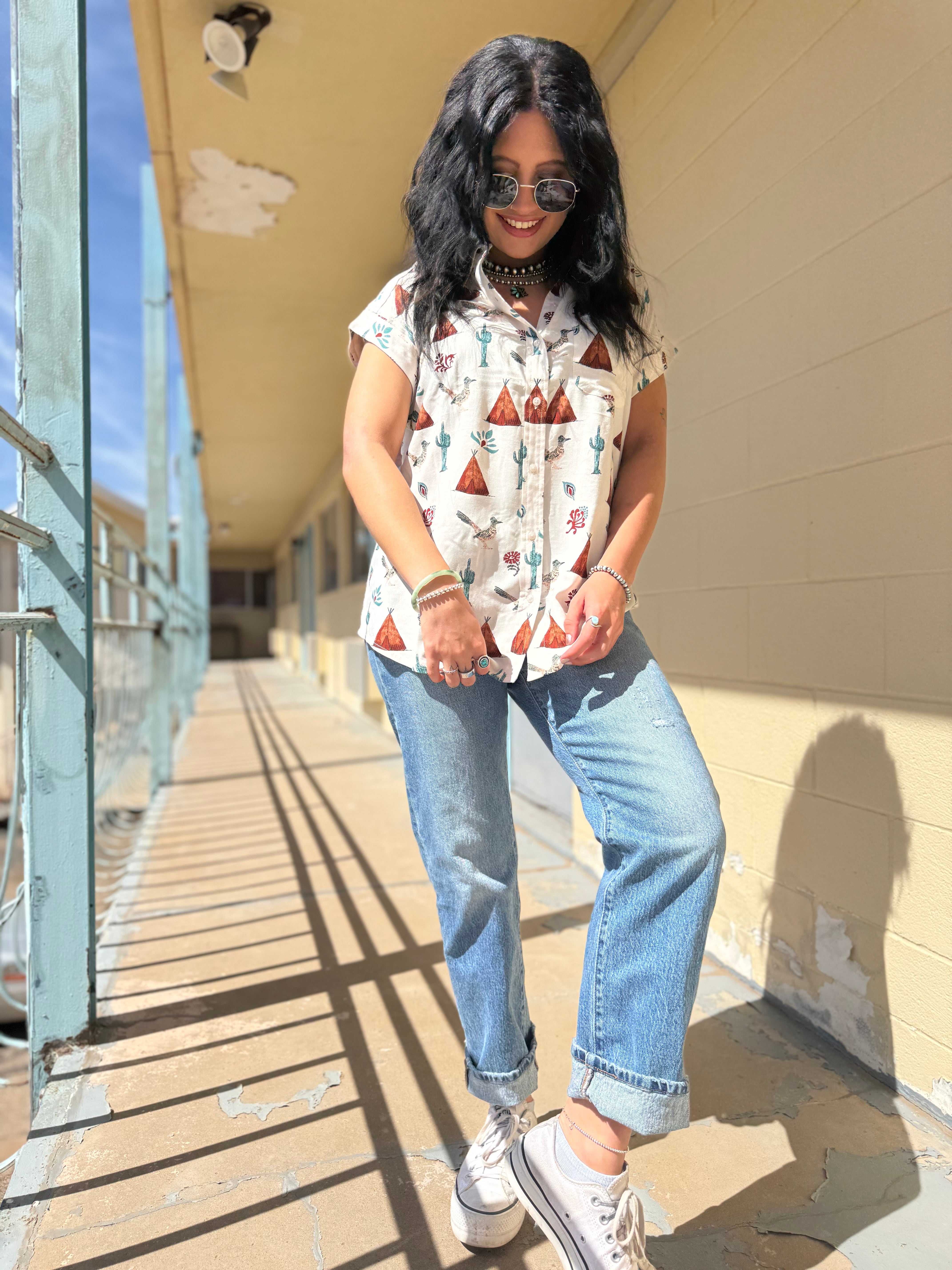 - Button down western roadrunner top
