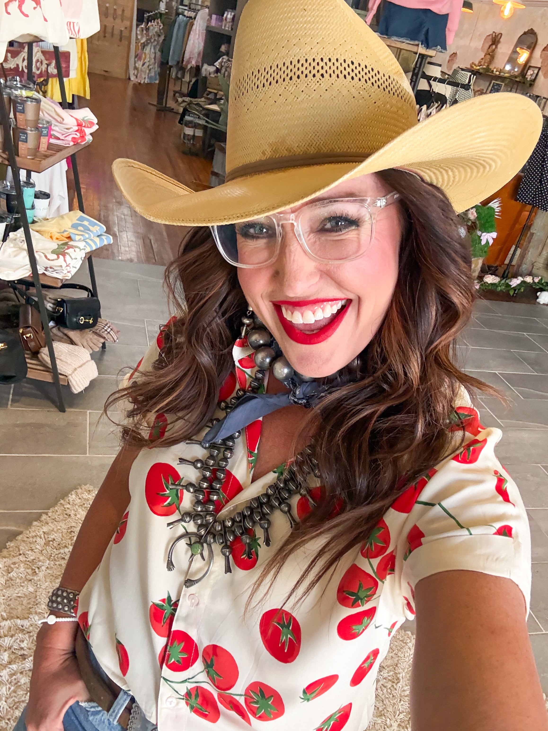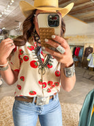 - Button down short sleeve tomato top