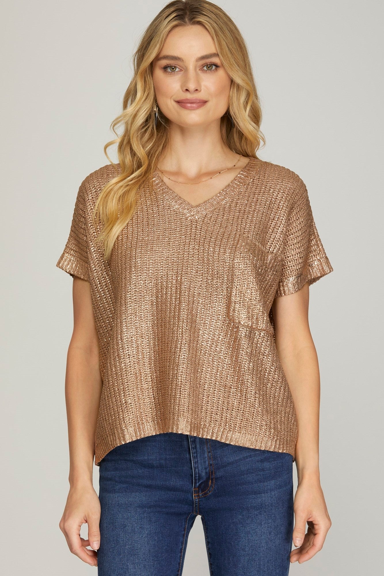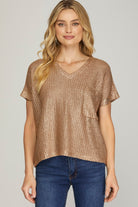 - Short sleeve metallic sweater
