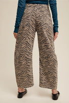 • Zebra print barrel jeans