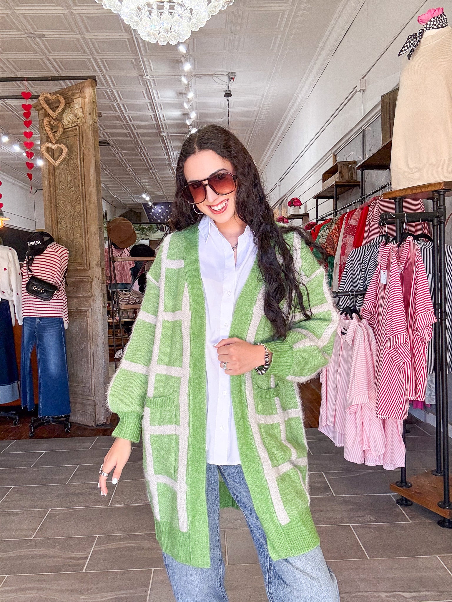 Green Check Cardigan