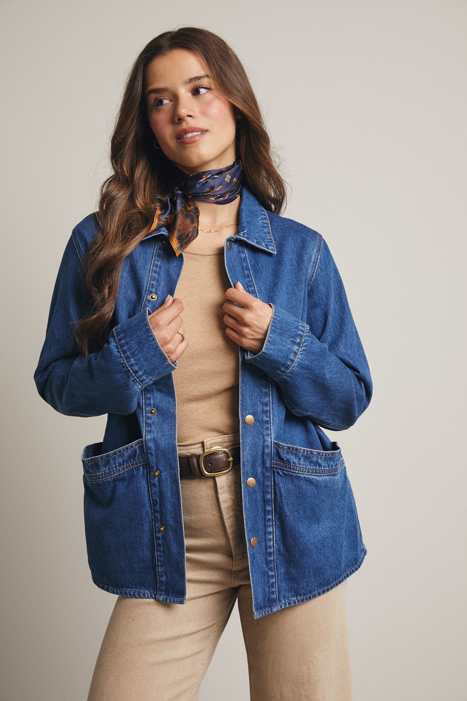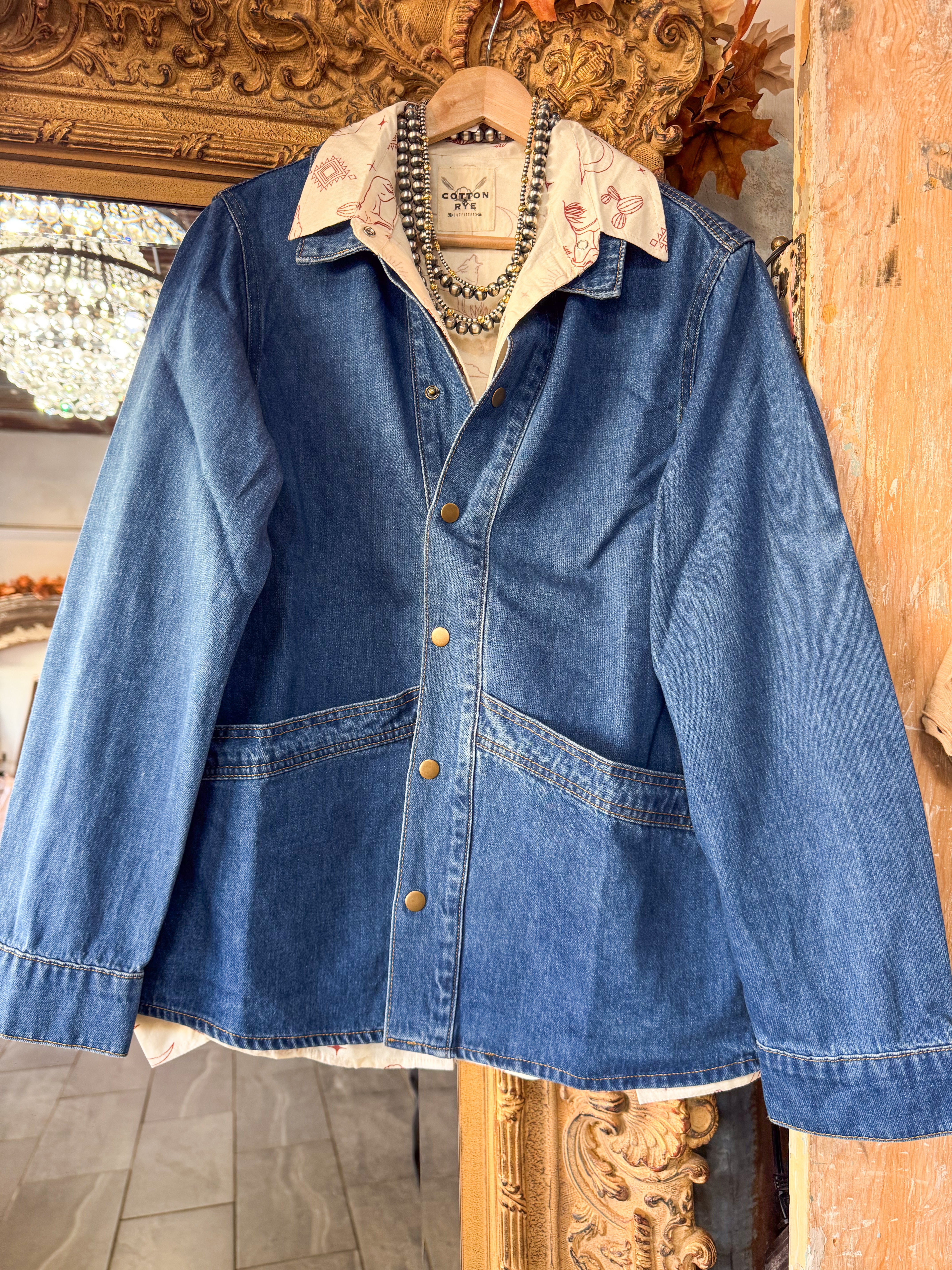 • Snap front button denim jacket