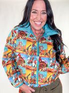- Cowboy printed puffer jacket