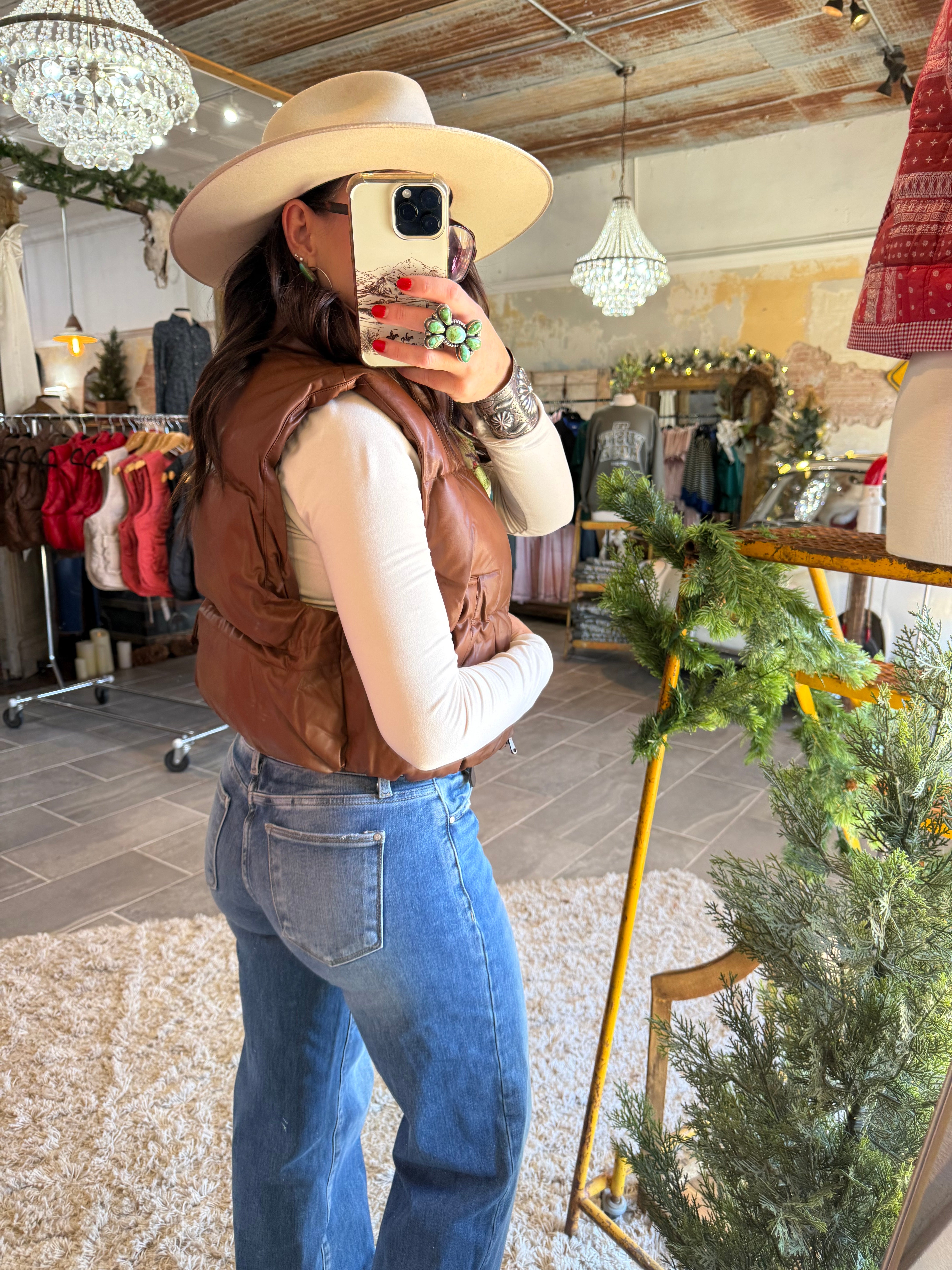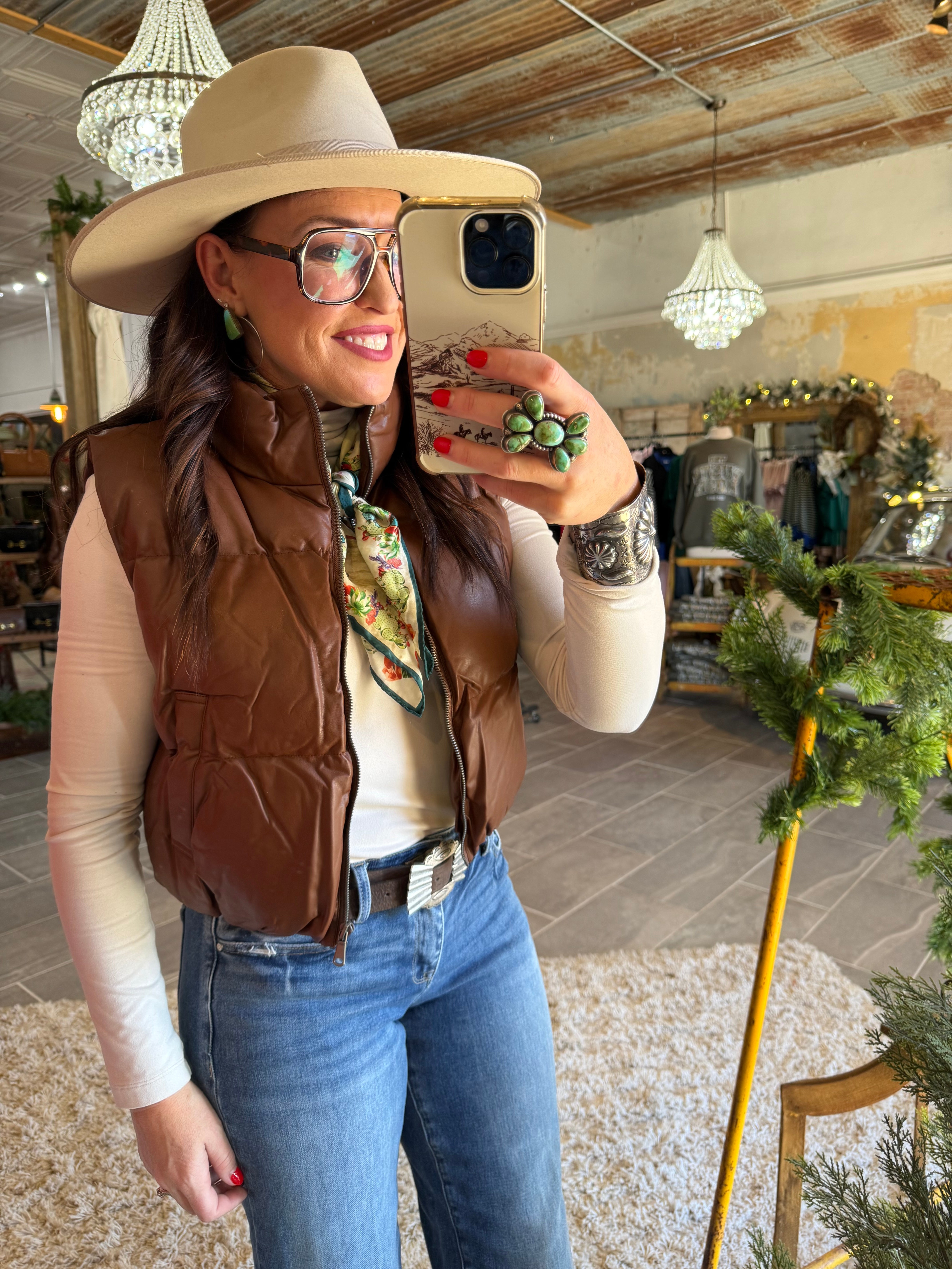 - Brown faux leather puffer vest