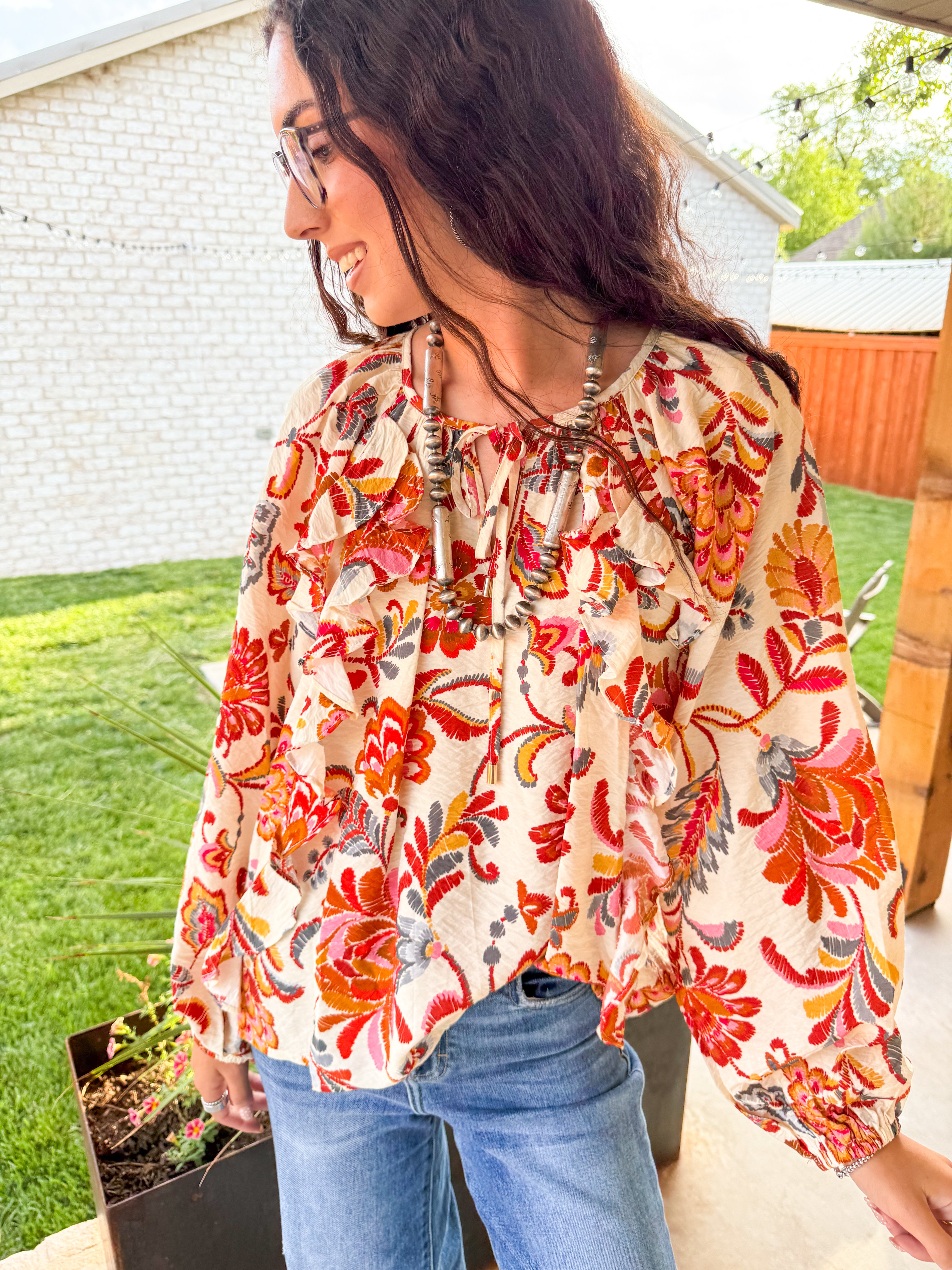 - Floral printed ruffled top