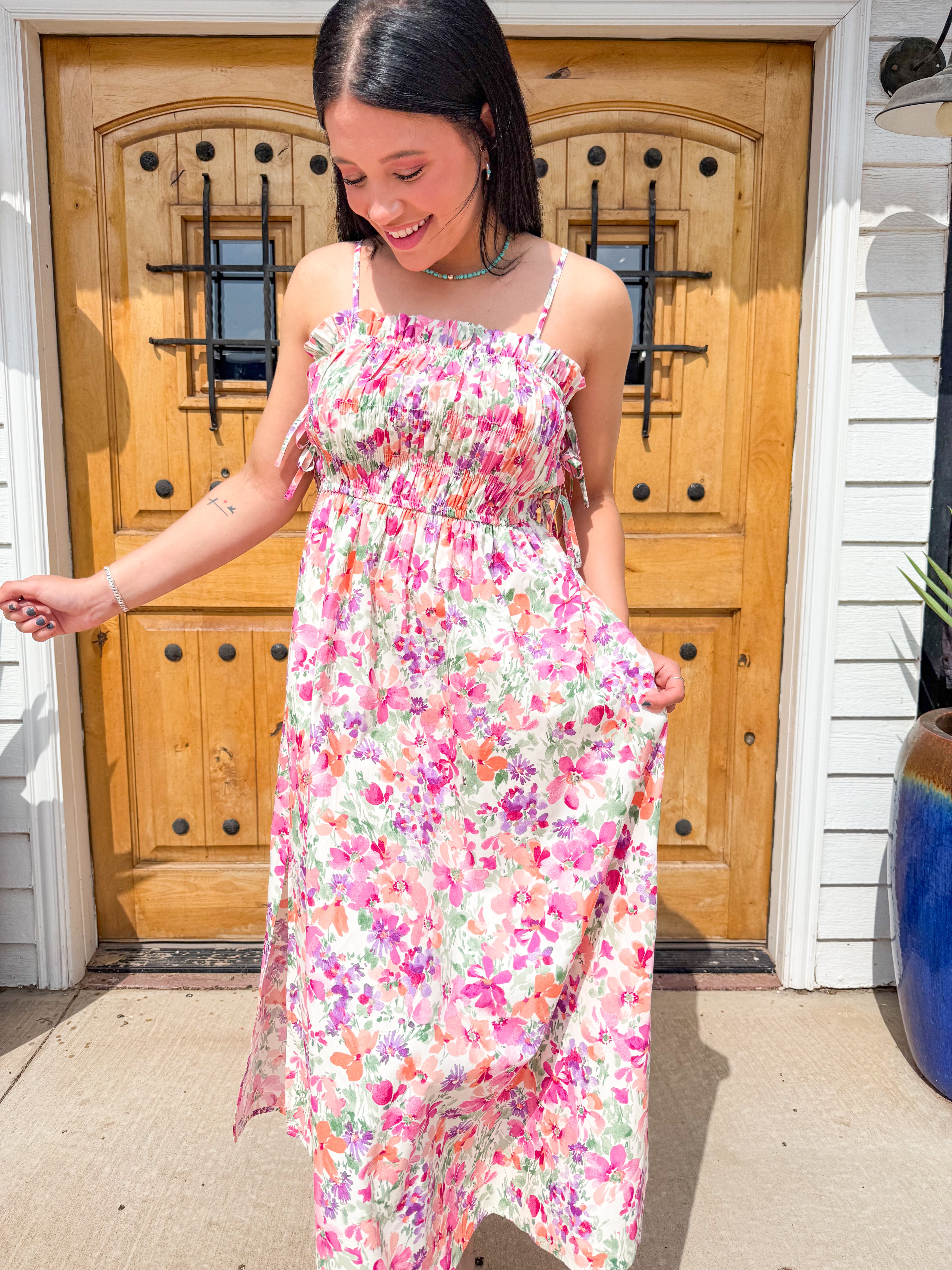 - Floral print midi dress