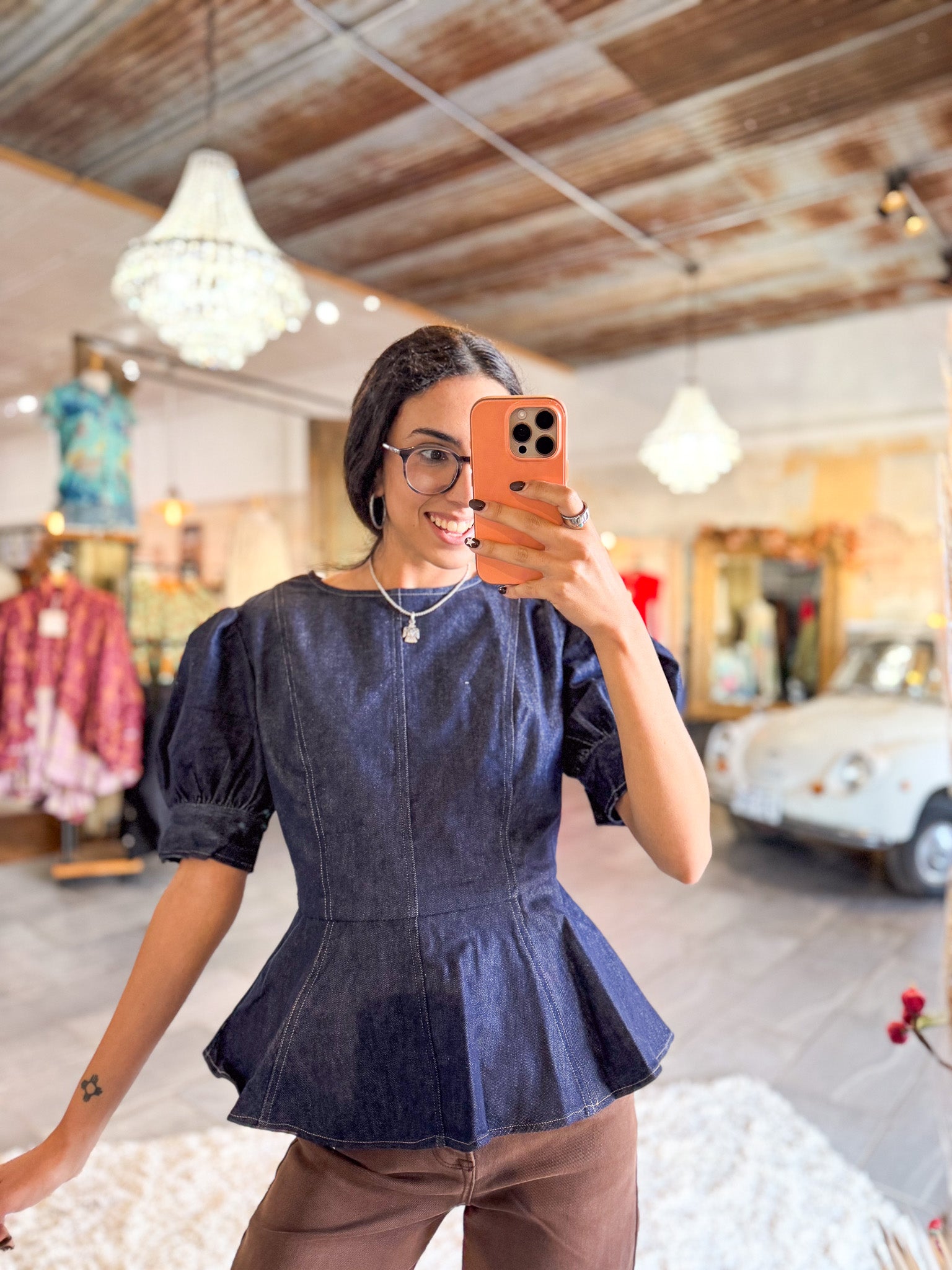 - Denim puff sleeve top