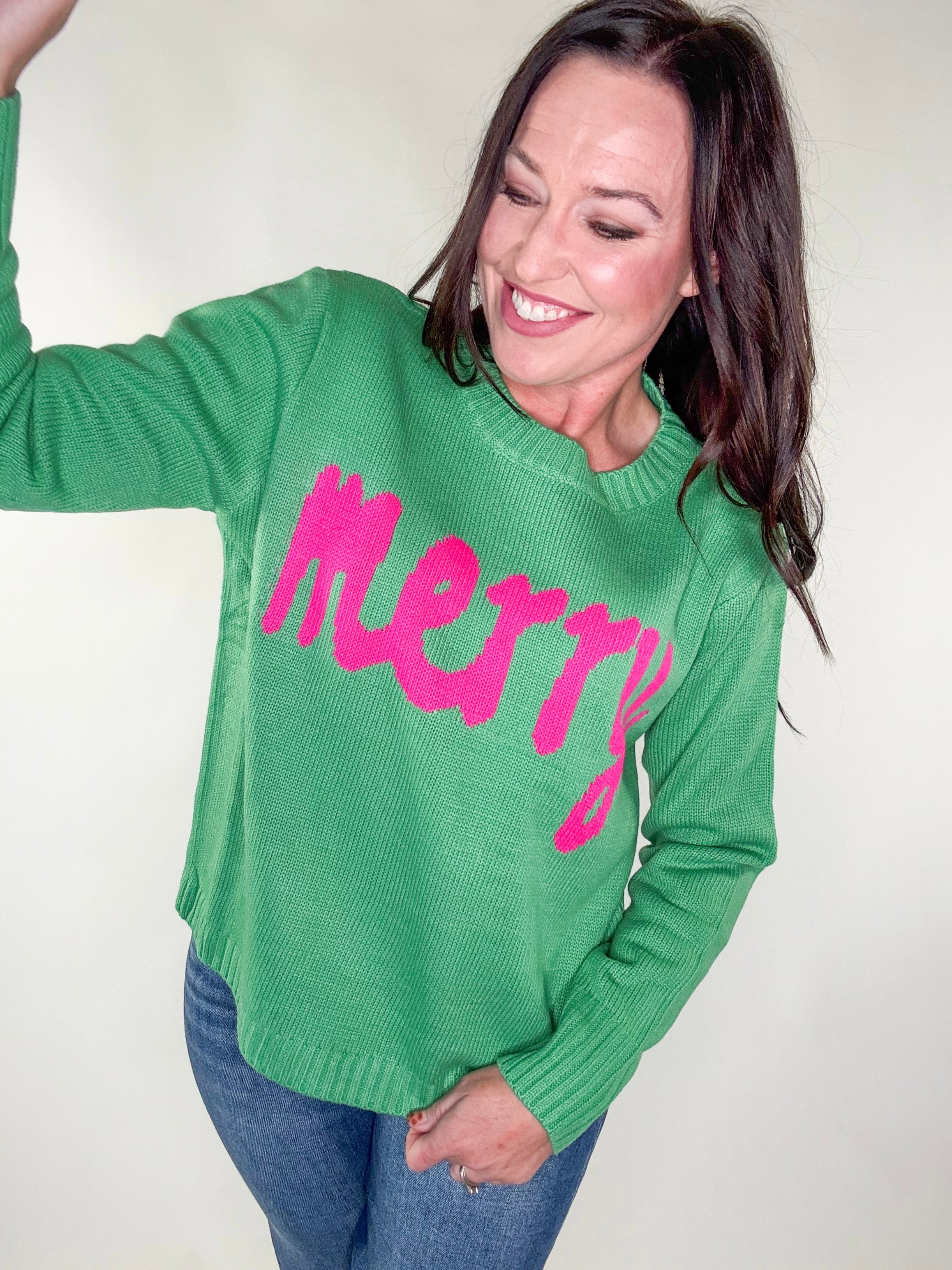 • Merry pink and green sweater