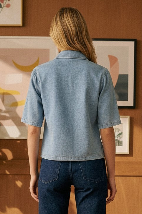 - Short sleeve collared denim top